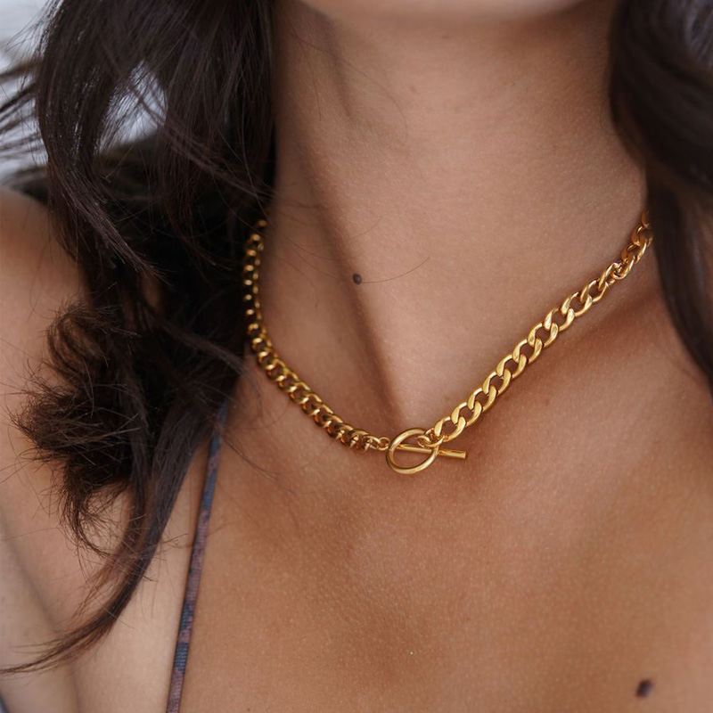 Cuban Chain Necklace for Women, Curb Link Stainless Steel ,Toggle Clasp Necklaces Statement Jewelry – Sumsfashion