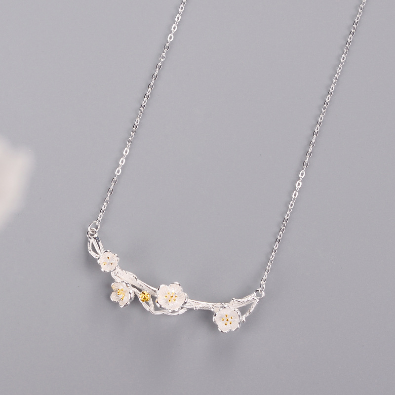 Real 925 Sterling Silver plum flower branches Pendant Necklaces Minimalist Fine Jewelry For Women Party Accessories – Sumsfashion