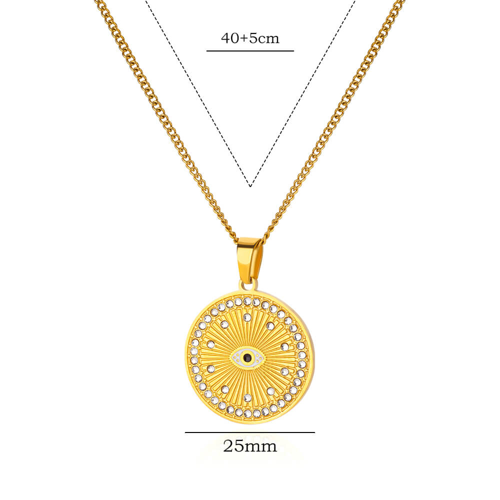 Zircon Stainless Steel Evil Eye Pendant Necklaces For Women Men Gold Color Round Evil Eye Necklace Wedding Jewelry Gift N07005G-1 – Sumsfashion